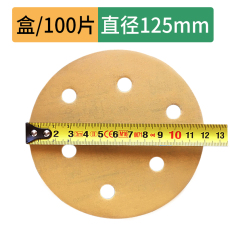 5寸6孔干磨黄砂无孔圆盘砂碟片腻子打磨抛光砂纸植绒自粘干磨砂皮